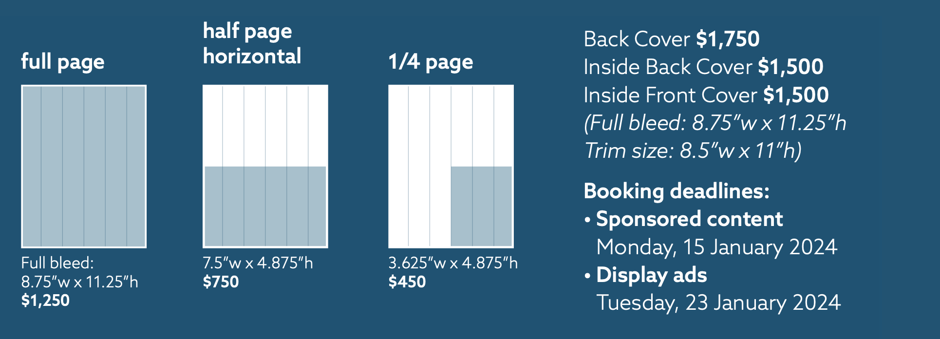 *If artwork is not supplied by the deadline, the publication may be sent to print without the advertisement, and Compass Media reserves the right to charge full cost of the advertisement.