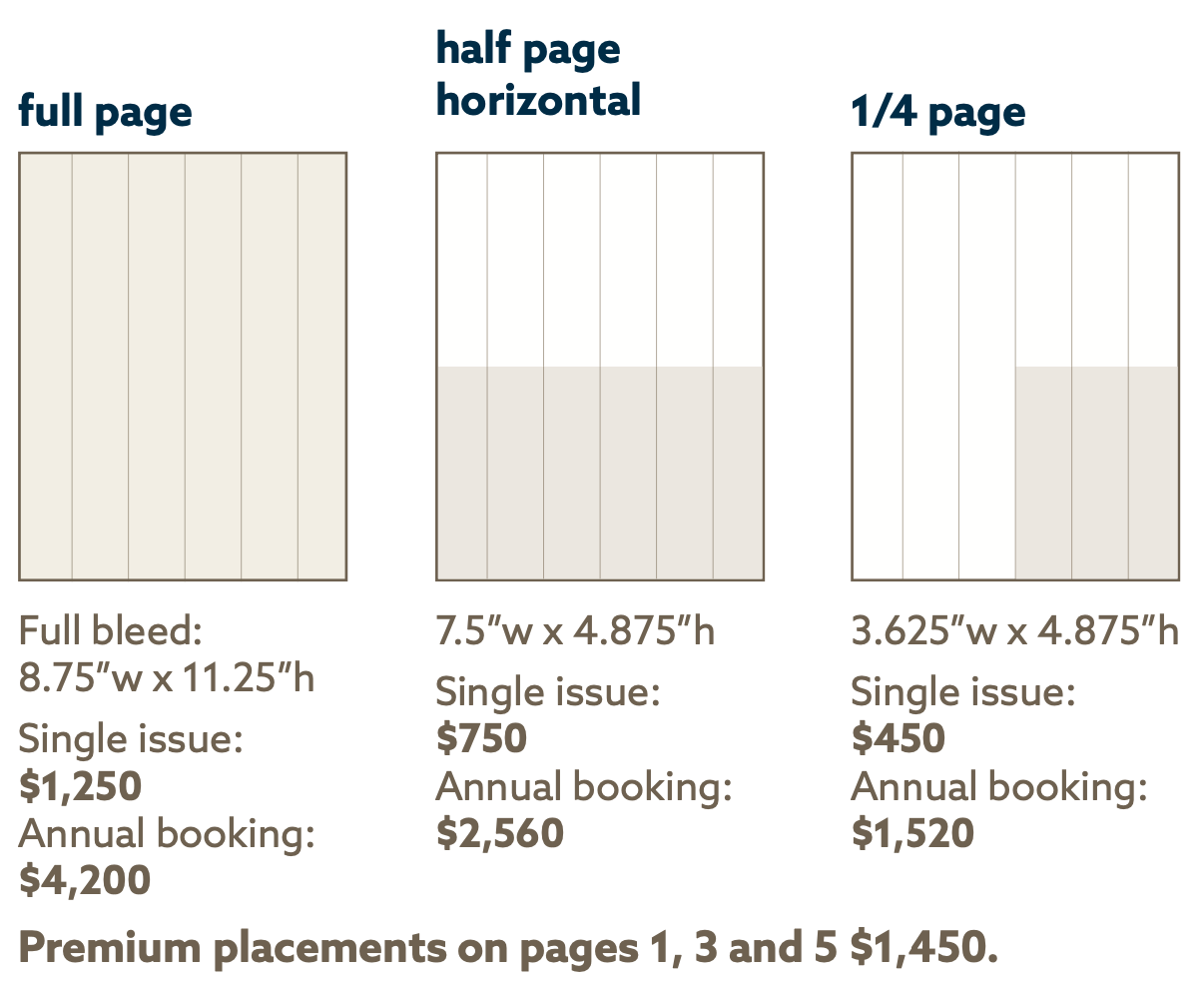 *If artwork is not supplied by the deadline, the publication may be sent to print without the advertisement, and Compass Media reserves the right to charge full cost of the advertisement.